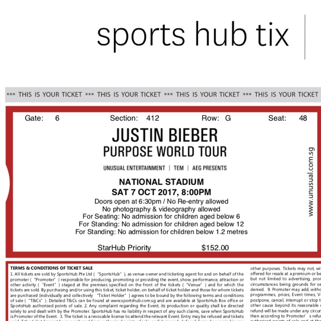 Terjual Dijual Tiket Justin Bieber Singapore 7 Oct 2017 10 Tiket Cat 4 Kaskus